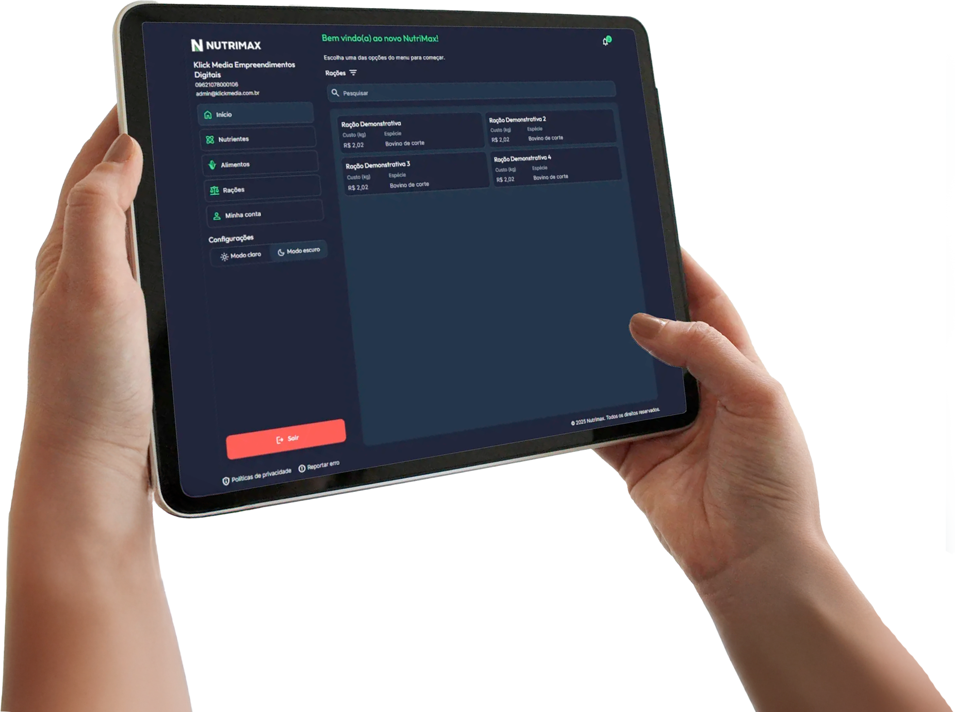 O NutriMax é o único software de custo mínimo e lucro máximo com aplicativo nativo para Android e iOS, garantindo acesso fluido em qualquer dispositivo, celular, tablet ou navegador. Com isso, você pode consultar, formular e gerar relatórios de qualquer lugar.